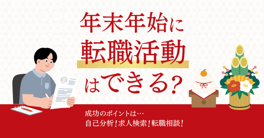 年末年始に当たる12月下旬~1月上旬頃は挨拶回り、催事、長期休暇等が重なり1年の中でも企業が忙しい時期に当たります。その中での面接調整が非常に困難になります。その為年末年始内で転職活動を終える事自体が非常に難しくなります。特に年明けから4月入社を目指し市場が活発化しますので、それに向け焦らず準備期間としましょう。